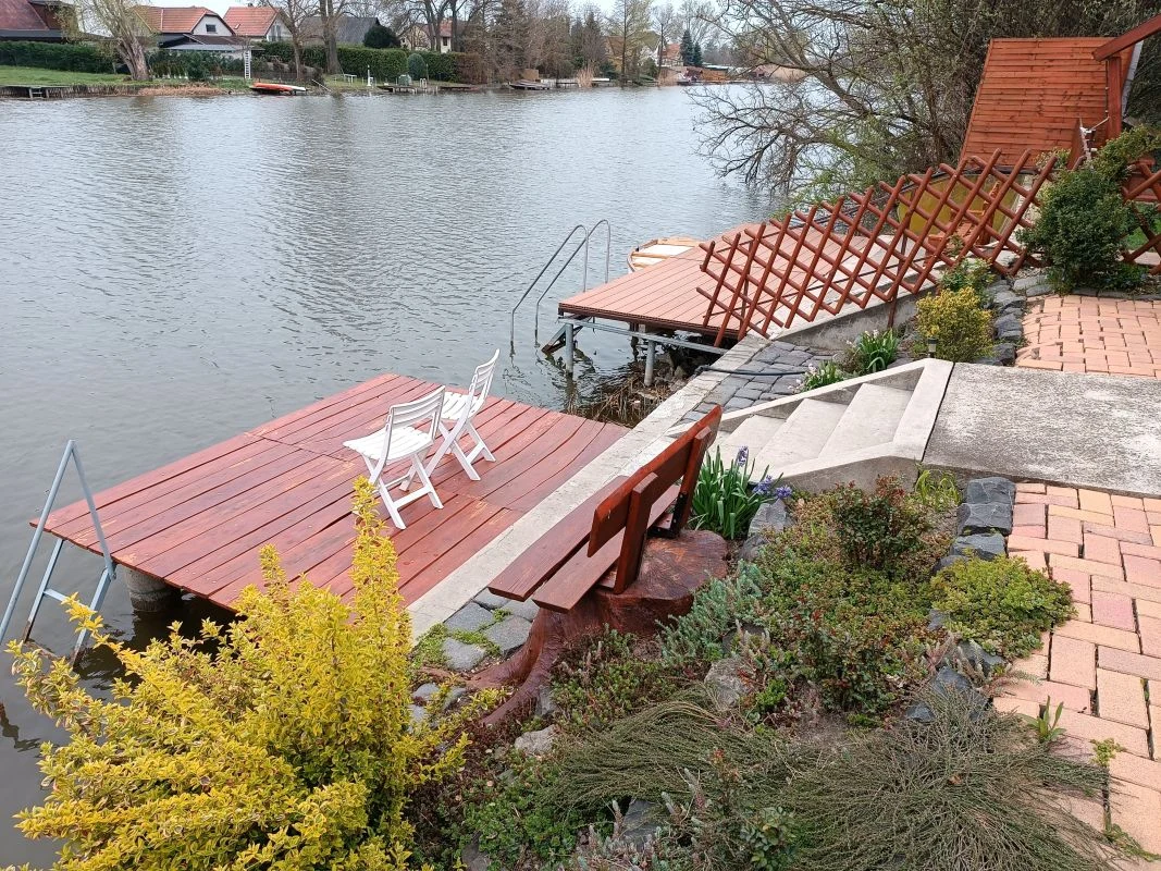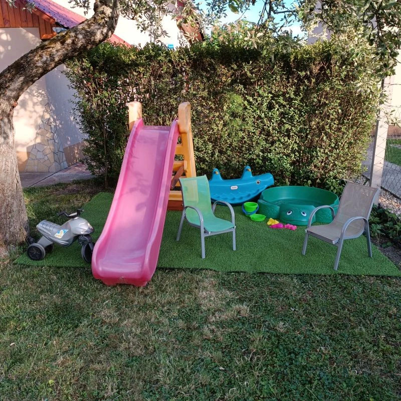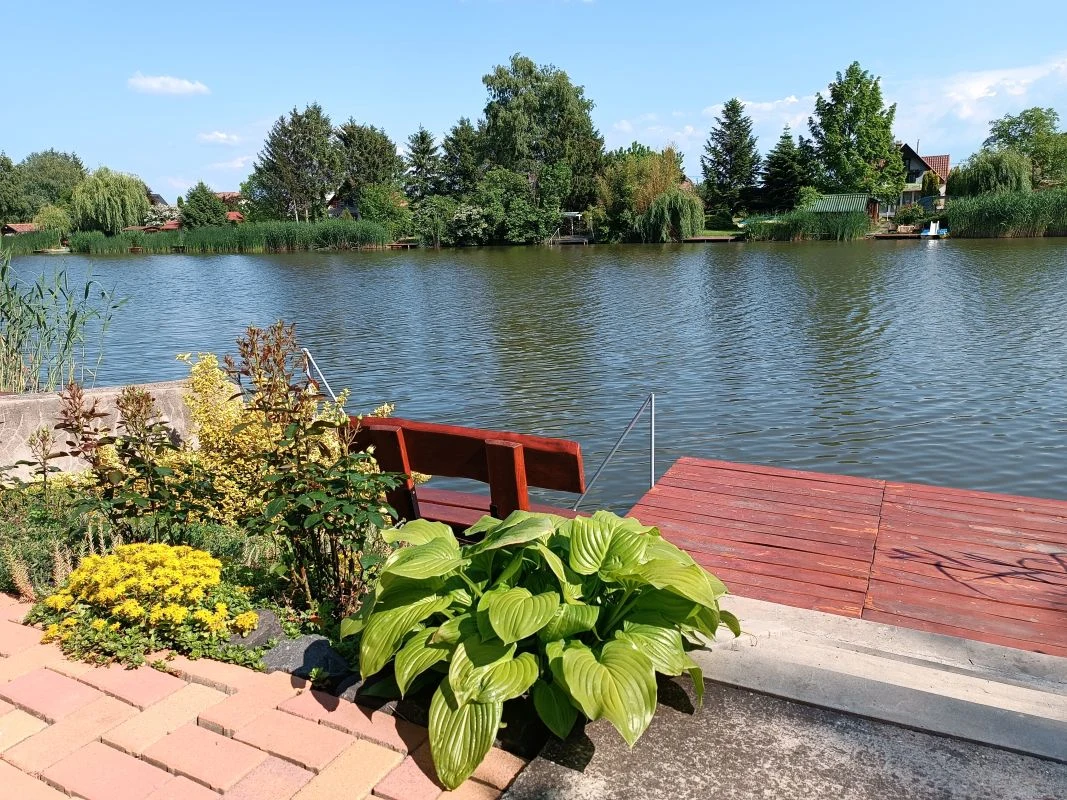 Az épületből kilépve egy barátságos kertbe lépünk, ahol árnyékos kerti pavilon fogadja Vendégeinket, az alatta található asztallal és székekkel. A kertben található sütögetőhöz biztosítunk bográcsot, nyársakat, tárcsát és grillsütőt is, valamint az ezek használatához szükséges 1 rekesz tűzifát. A négy oldalról (vízpart felől is) zárt kertben elhelyezésre került egy szezonálisan használható, 3 m átmérőjű medence is. A Holt-Körös által nyújtott látványt napozóágyon vagy a kiépített part mellett kihelyezett padon tudjuk megcsodálni, de akár egy strandkajakkal is felfedezhetjük a holtág szépségeit. A 7 m széles vízparthoz 7 m²-es stég tartozik, melyen a horgászok is hódolhatnak szenvedélyüknek.Az udvarban 2 gépkocsi részére fedett és kamerázott autóbeálló alatt biztosított a parkolás.