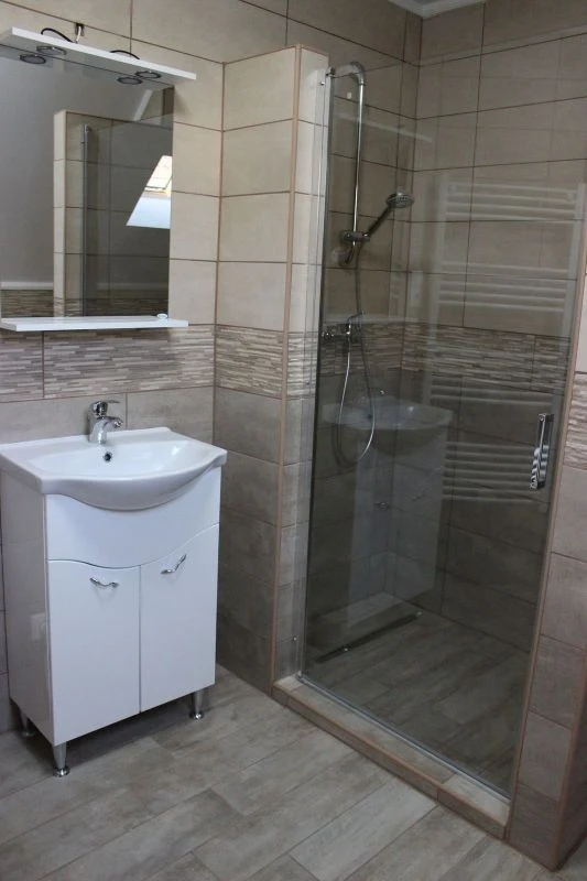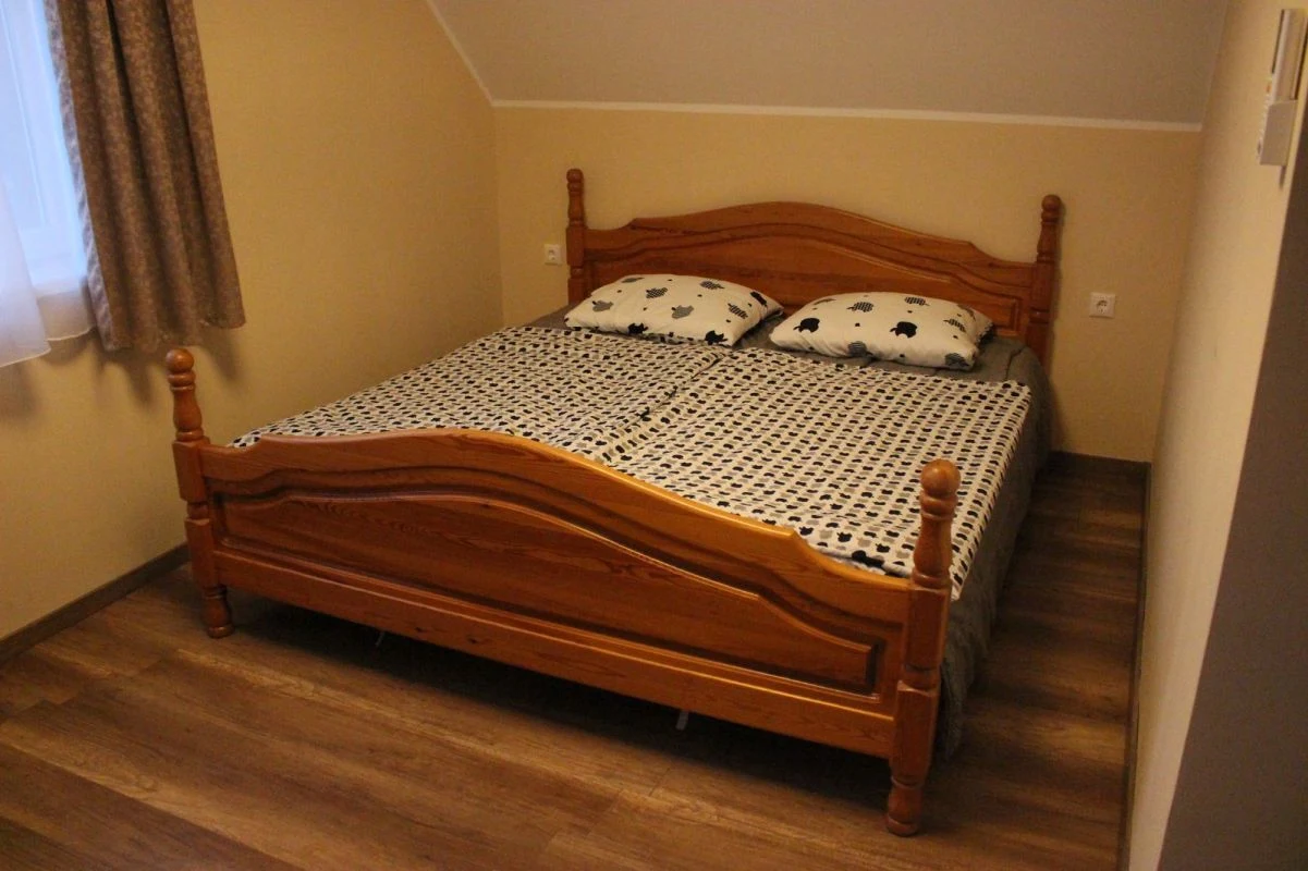 Az emeleten 3 hálószoba és 2 fürdőszoba található. A szobák közül az egyikben nagyméretű franciaágy és 1 egyszemélyes ágy található, melyhez tartozik egy saját fürdőszoba.