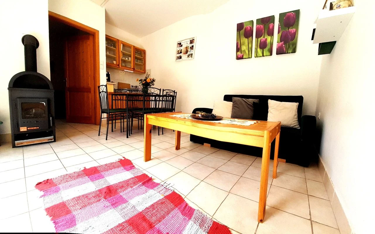 Az üdülő fatüzelésű kályhával és klímával fűthető.