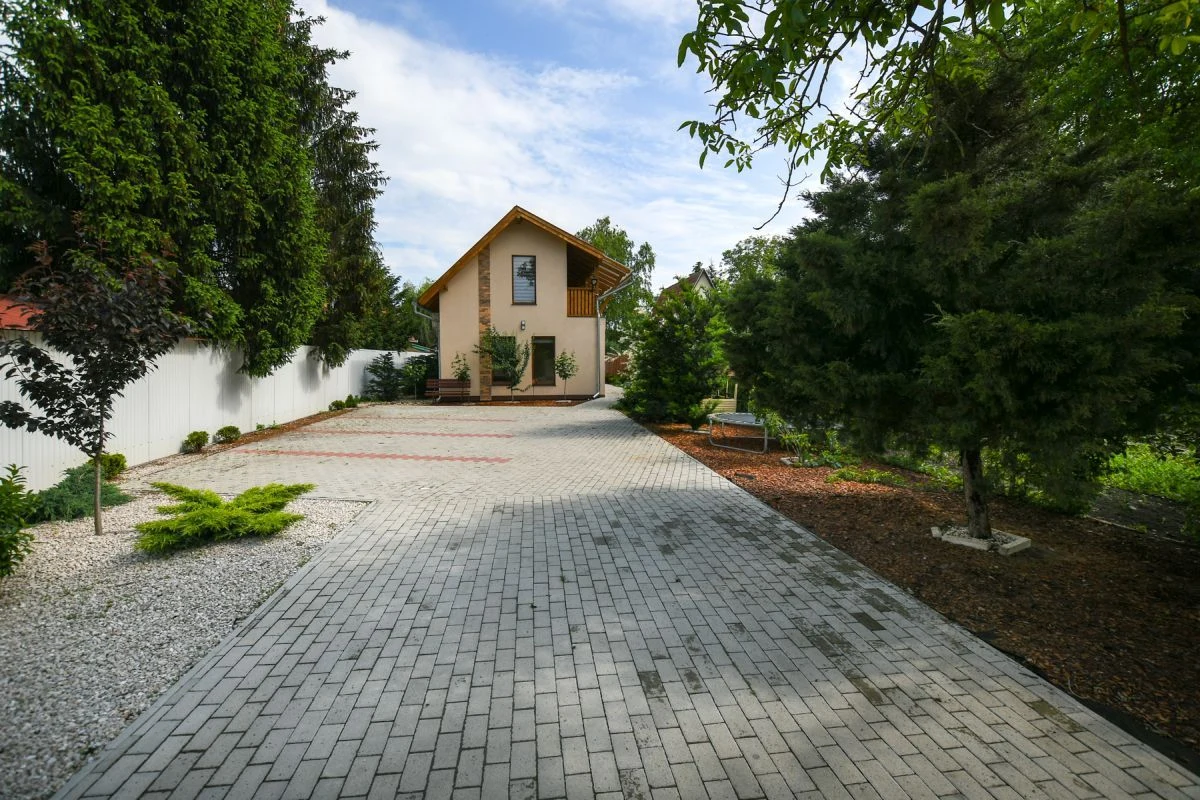 A négy oldalról (vízpart felől is) elkerített nyaraló kertjében 6, az utcán további 2 gépkocsi részére parkolási lehetőség biztosított.