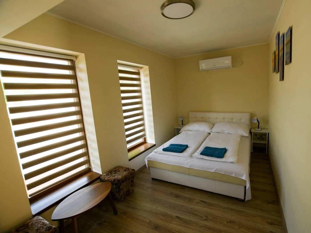 A nyaralóban a hidegebb napokon inverteres klíma gondoskodik a kellemes hőmérsékletről.