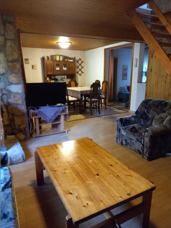 A közvetlen vízparti, 6+2 férőhelyes épület földszintjén az előtérből egy tágas nappali nyílik valamint egy étkező és egy kisebb, TV-vel felszerelt, világos nappali. Szintén a földszinten található a hűtővel és fagyasztóval, gáztűzhellyel, mikrohullámú sütővel, kávéfőzővel valamint 8 főre edény-, ét- és pohárkészlettel felszerelt konyha továbbá két fürdőszoba. A fürdőszobák zuhanykabinnal, mosdóval, WC-vel állnak kedves Vendégeink rendelkezése.A klimatizált emeleten egy 2 fő részére pótágyazható kanapéval felszerelt nappali és 3 hálóhelyiség található. Az első szoba teljesen különálló és egy kétszemélyes matracos ággyal berendezett. A második hálóban három kanapé gondoskodik Vendégeink kikapcsolódásáról. Ebből a szobából nyílik egy másik, kisebb háló, melyben a beépített L-alakú, szivacsmatracos ágy 3 fő fekvőhelyéül szolgál.