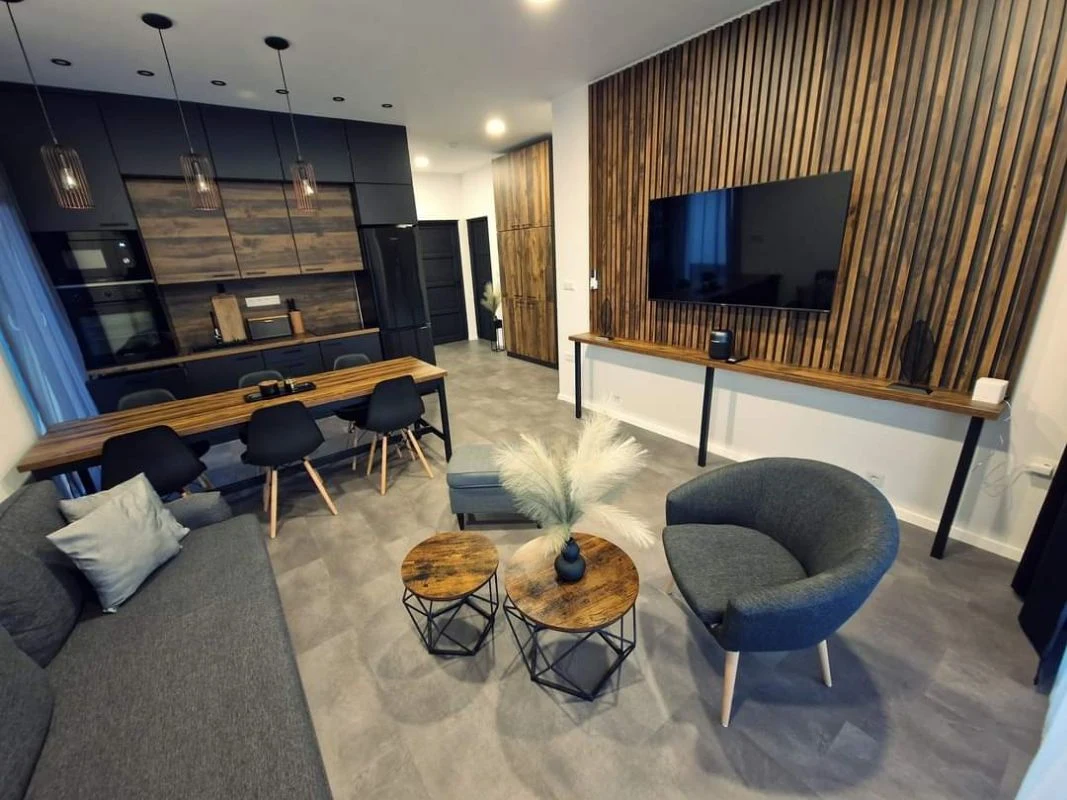 Az apartmanok egyenként 80 négyzetméteres alapterületűek, és 3-3 hálószobával illetve 3-3 fürdőszobával rendelkeznek. Minden szobához saját zuhanyzós fürdőszoba és WC is tartozik. A nappaliban nagyképernyős TV biztosítja a pihenést, kilátással a teraszra és a vízpartra. Itt apartmanonként 2 fő részére pótágyazási lehetőség biztosított. Minden apartmanban teljesen felszerelt konyha került kialakításra (hűtő, mosogatógép, sütő, mikrohullámú sütő, kerámialapos tűzhely, kapszulás és kotyogós kávéfőző, vízforraló, kenyérpirító, tányér- és pohárkészlet 8+8 főre).