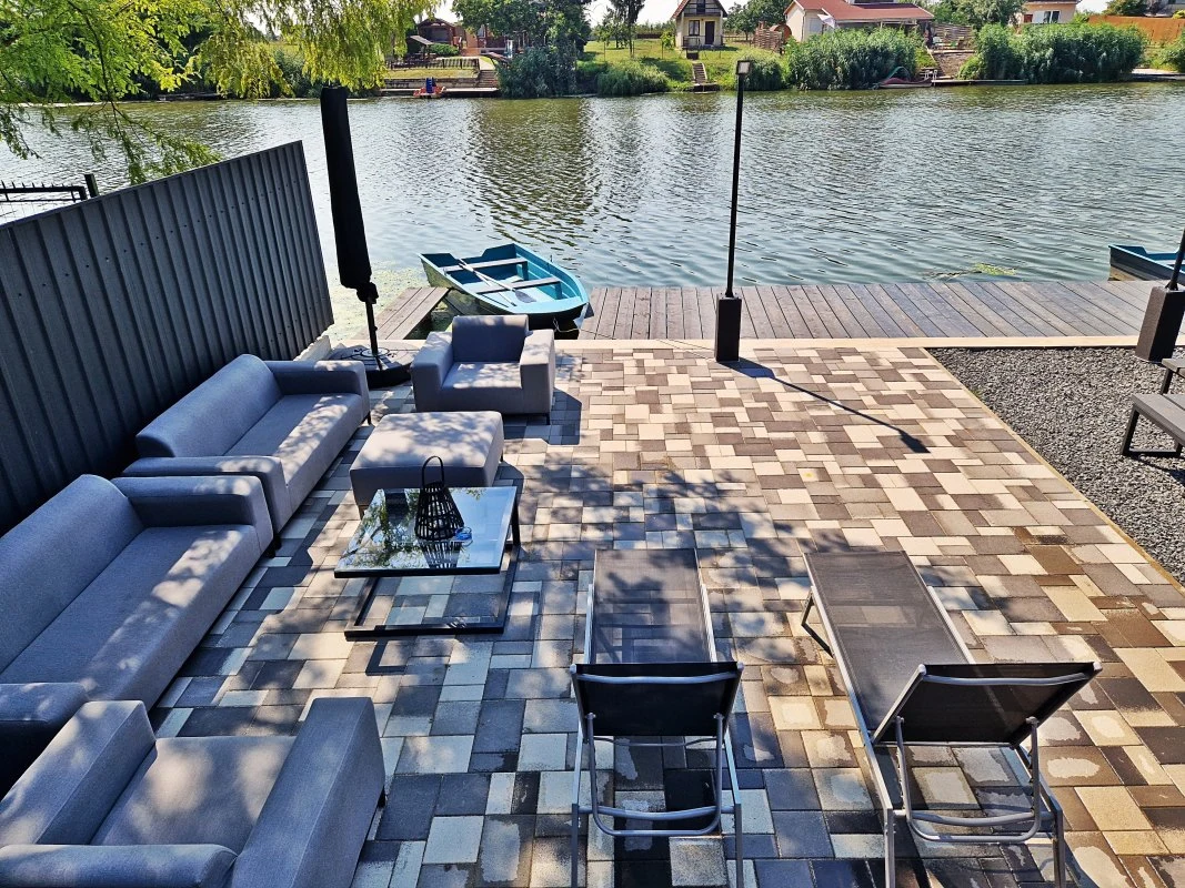 A 12 méter széles vízparthoz 20 m2-es stég, vízibicikli és csónak kapcsolódik, mellyel Vendégeink bebarangolhatják a festői holtágat. Ezen felül 4 db SUP valamint 4 db kerékpár is ingyenesen használható.