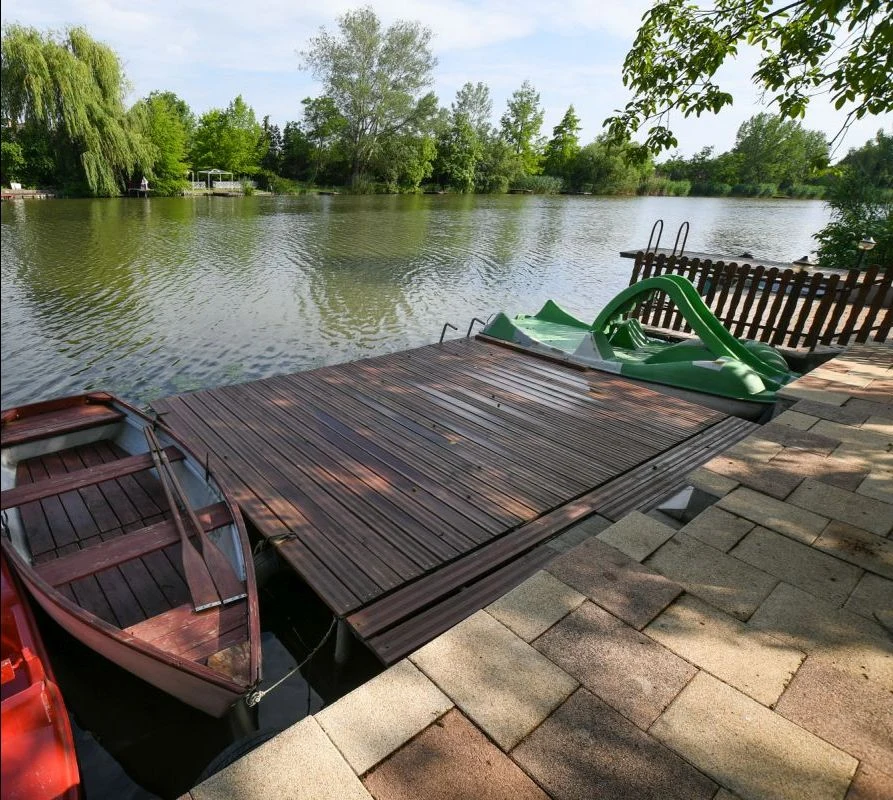 A 10 méter széles vízparthoz egy 12 m2-es stég kapcsolódik, melynek teljes szélességében napozásra, horgászásra nyílik lehetőség. A kikapcsolódáshoz a kiépített vízparton 4 db napozóágy, egy csónak és egy vízibicikli is rendelkezésre áll, mellyel bebarangolhatják a holtágat.