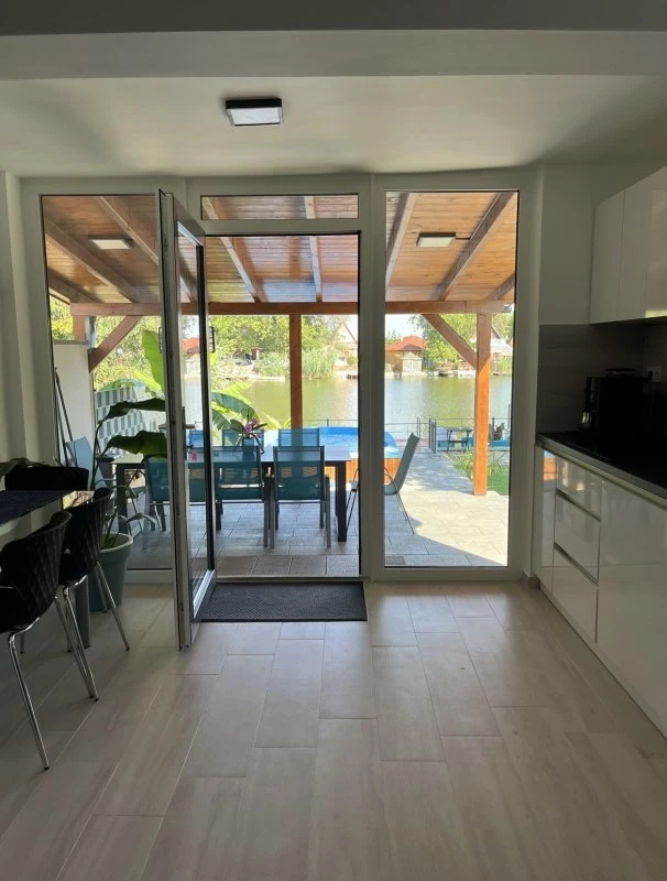 A 6+1 személyes, 1 hálószoba + 1 hálóteres, 1 fürdőszobás modern körös-parti nyaraló földszintjén egy légtérben található konyha, étkező és klimatizált nappali fogadja kedves Vendégeinket kényelmes, 1 fő részére pótágyazható ülőgarnitúrával és falra szerelt TV-vel. A földszinten továbbá egy WC-vel ellátott zuhanyzós fürdőszoba, valamint egy különálló WC is kialakításra került. A konyha teljeskörűen felszerelt (kombinált hűtő, főzőlap, mosogatógép, darálós kávéfőző, mikrohullámú sütő, vízforraló, ét-, pohár-, tányér- és edénykészlet különböző méretekben, 7 főre). A klimatizált emeleten kialakításra került egy hálószoba, melyben 2 db franciaágy található, valamint egy fallal részlegesen elkülönített hálótér, ahol 1 db franciaágy gondoskodik Vendégeink pihentető kikapcsolódásáról. Kisgyermekek részére utazóágy, etetőszék, babakád biztosított.A nyaraló ablakait szúnyoghálók védik. A kellemes hőmérsékletről a földszinten és az emeleten elhelyezett 2 db hűtő-fűtő klíma gondoskodik.