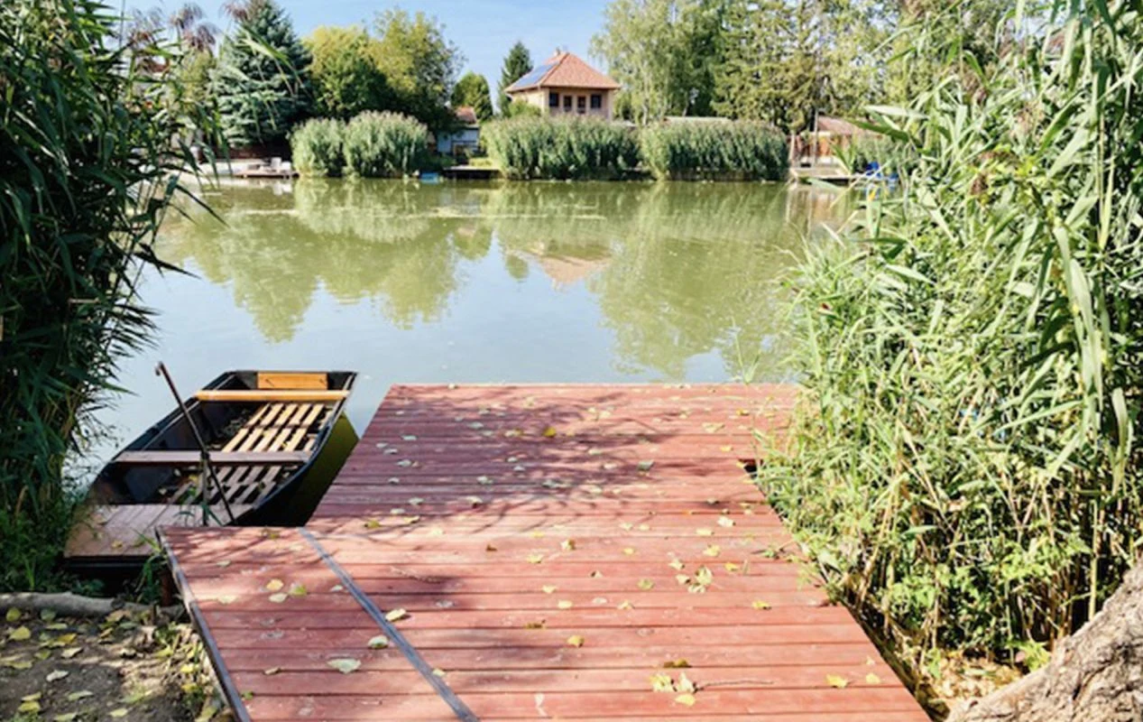 A 12 méter széles vízparthoz 12 nm-es stég kapcsolódik, melynek teljes szélességében horgászásra nyílik lehetőség. A nyaralóhoz tartozó csónak és 4 darab napozószék is Vendégeink kényelmét szolgálja.