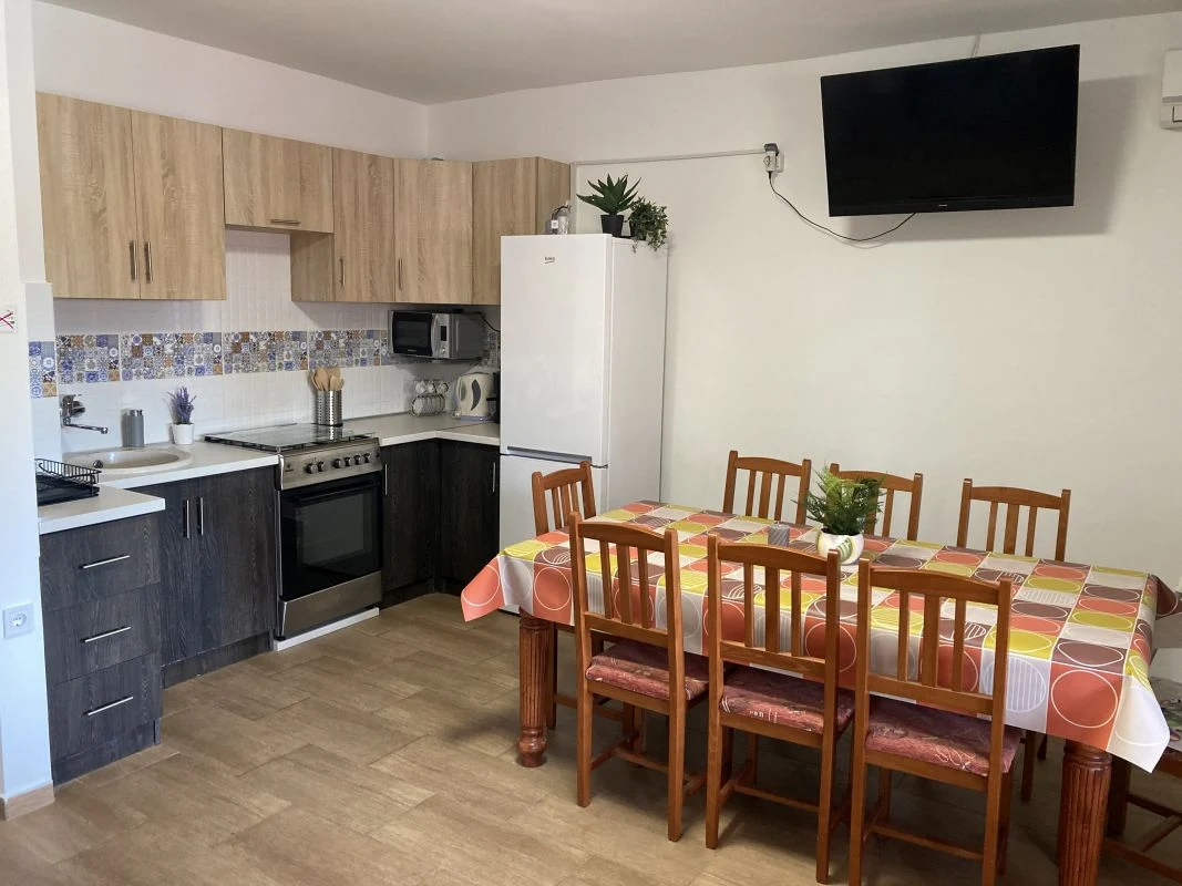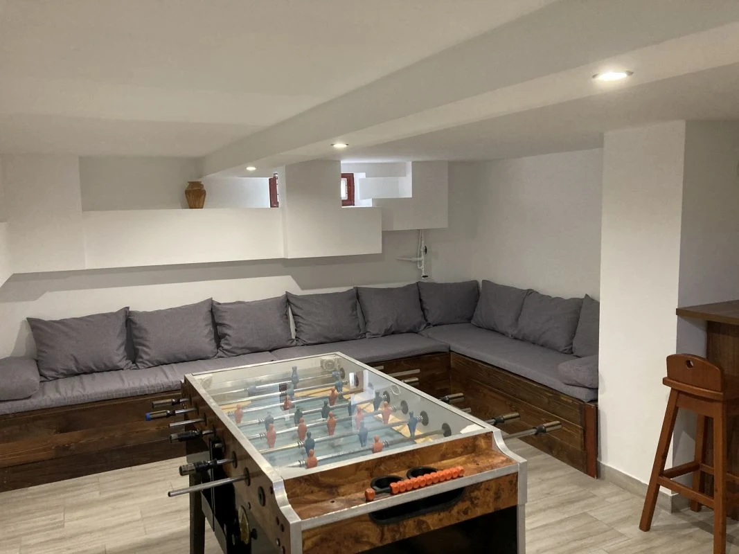 A nyaraló pincerészében egy szórakozásra kialakított közösségi tér várja az aktív pihenésre vágyó Vendégeinket, ahol csocsóasztal, kanapé és egy nagyméretű asztal, székekkel gondoskodik a felhőtlen kikapcsolódásról.