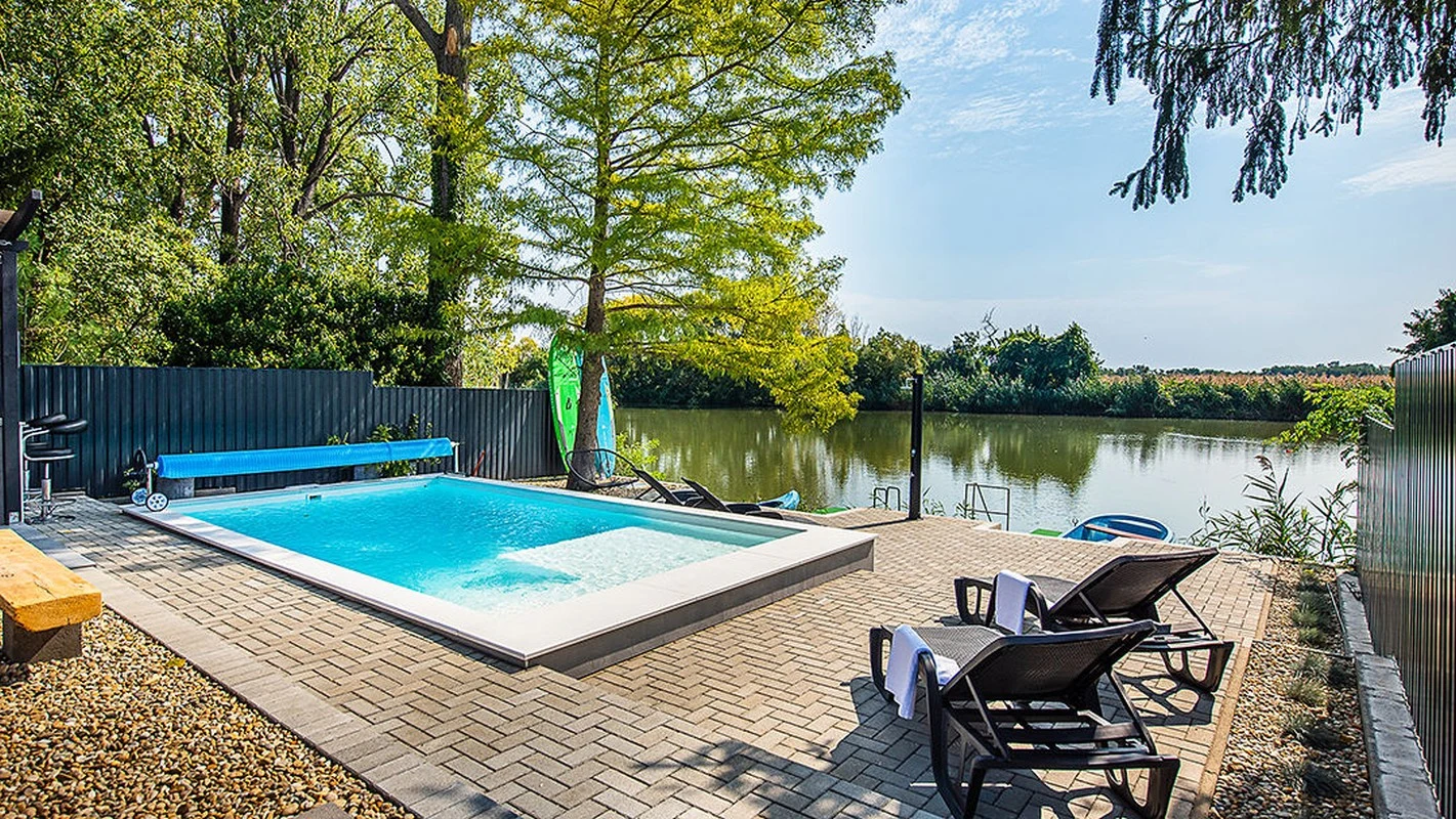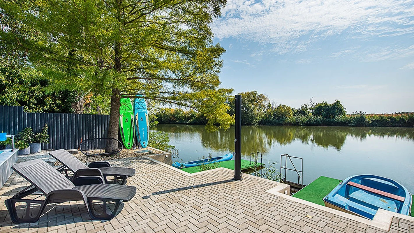 A 12 m széles kiépített vízparthoz egy 6 m²-es, illetve egy 12 m²-es stég, valamint csónak, túrakenu és 2 db SUP tartozik, mellyel felfedezheti a holtág természeti szépségeit.
