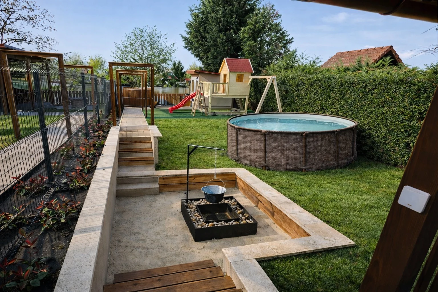 A szabadtéri sütögetéshez biztosított egy süllyesztett, LED hangulatvilágítással kialakított sütögetőhely, ami jó társaságban felejthetetlen, akár nosztalgikus élményt nyújt egy hűvös estén a tűz körül. Bográcsban, nyárson és grillen is készíthetők a finom ételek, emellett szalonnasütésre is van lehetőség, melyekhez a szükséges tűzifa is rendelkezésre áll. A 8,5 méter széles vízparton egy kb. 4 x 2,6 méteres stég a vízbe vezető létrával és kapaszkodóval várja kedves Vendégeinket, melyhez csónak, túrakenu és SUP is tartozik.