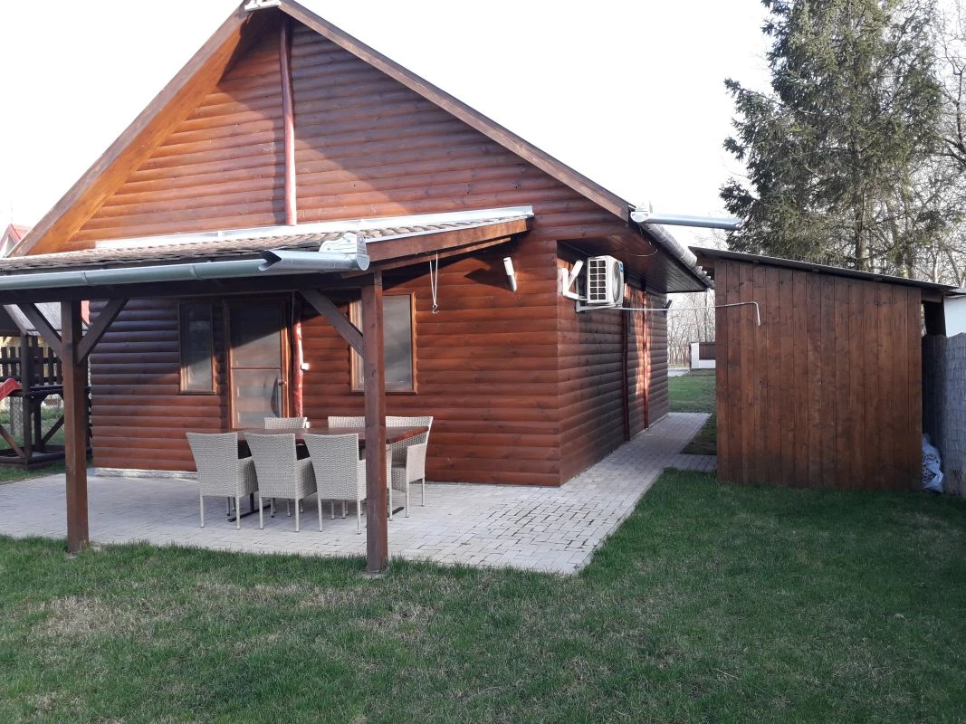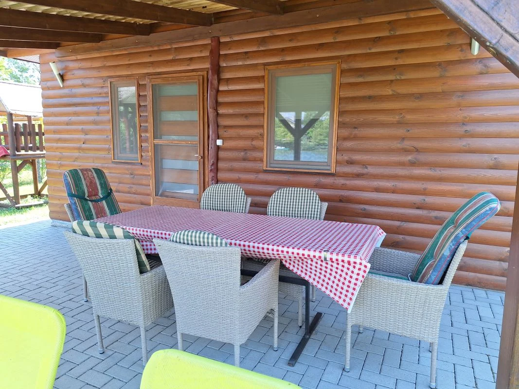 Rönkfa stílusú nyaraló kerti bútorokkal