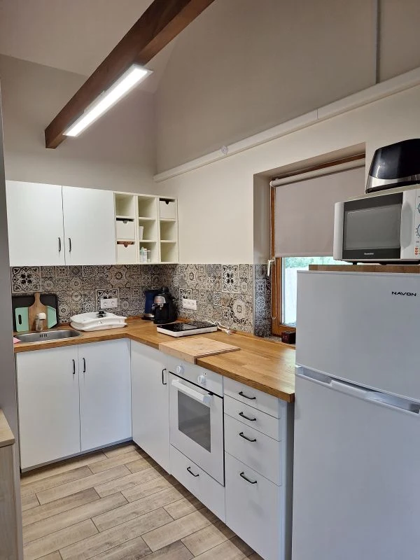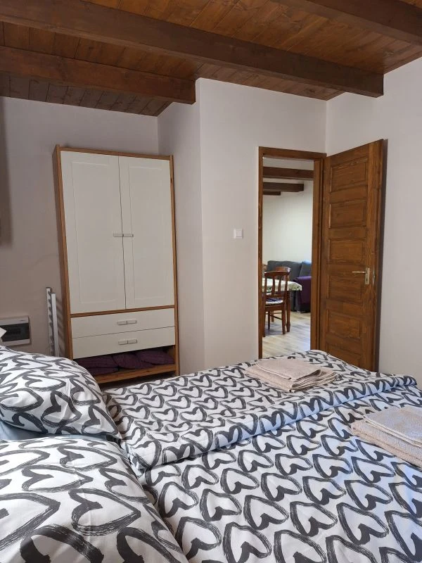 A földszinten két hálószoba került kialakításra, melyekben egy-egy franciaágy szolgálja Vendégeink kényelmét. A galériás emeleten pedig további két személy pihenhet szintén franciaágyon.