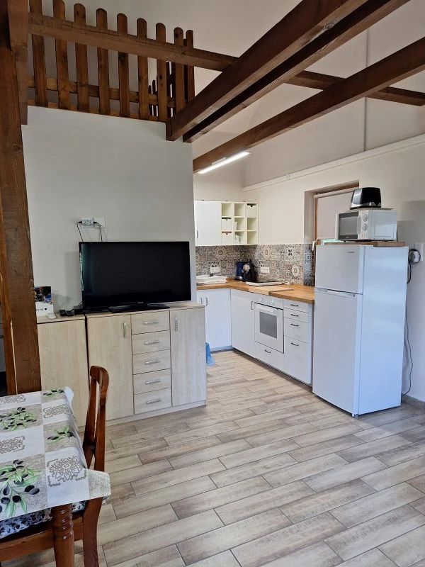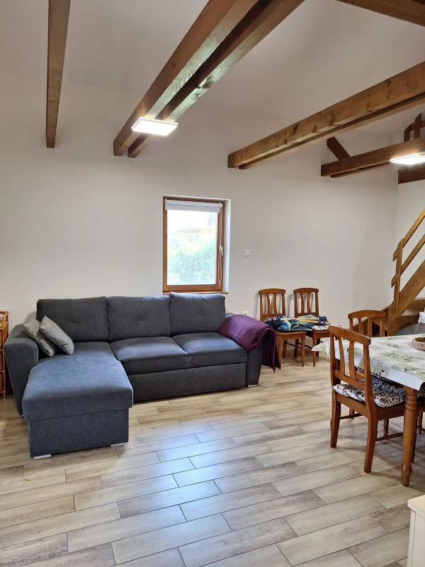A 6+2 férőhelyes, 2 szobás üdülő igényesen kialakított lakrészében a tágas nappali-konyha-étkező valamint a galériás emelet egy légtérben helyezkedik el. A nappaliban egy 2 személy részére ágyazható kanapé valamint TV szolgálja Vendégeink kényelmét.