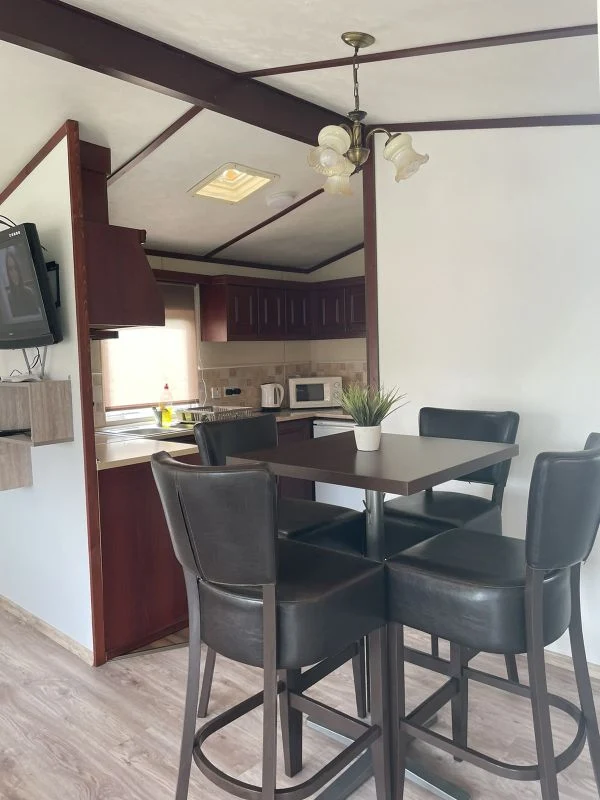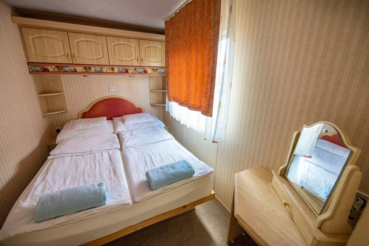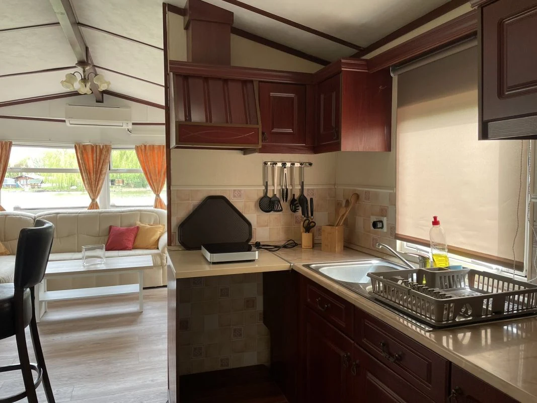 A 6 + 2 férőhelyes, 3 kisméretű szobával felszerelt nyaralóban a nappali-konyha-étkező egy légtérben helyezkedik el. A nappaliban étkezősarok, egy ágyazható sarokkanapé, valamint 130 csatornás TV biztosítja Vendégeink kényelmét. A konyha teljeskörűen felszerelt: egy lapos indukciós főzőlap, mikrohullámú sütő, hűtőszekrény (fagyasztórekesz nélkül), kenyérpirító, turmixgép, vízforraló, valamint 8 főre ét-, edény- és pohárkészlet rendelkezésre áll. A nappaliból nyíló mindhárom hálószobában 1-1 franciaágy található. A fürdőszoba zuhanyzóval és mosdóval felszerelt, a WC-vel egy helyiségben található meg. A nyaraló fűthető, a nappaliban található hűtő-fűtő klíma megfelelő komfortérzetet teremt hidegebb időjárás esetén is.Vendégeink részére ágynemű és törölköző is valamint ingyenes internet-hozzáférés is biztosított.