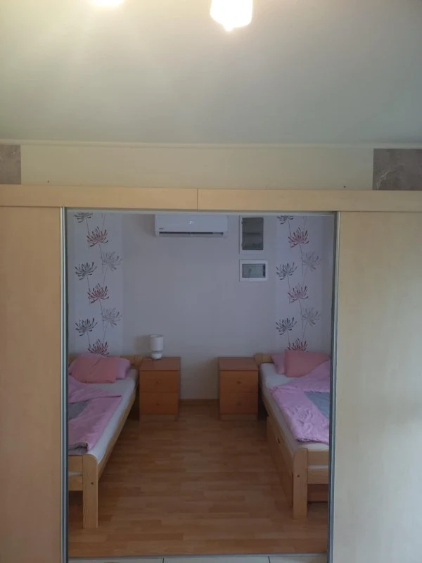 Az igényesen kialakított üdülőház két különálló lakrészből áll, melyekben 2 x 4 fő kényelmes elszállásolására nyílik lehetőség. Az ikerház két fele együttesen vehető bérbe, így elsősorban több generációs családoknak vagy baráti társaságoknak ajánljuk. Az ikernyaraló mindkét felében konyhával egybekötött nappalit, valamint egy különálló szobát és egy WC-vel felszerelt fürdőszobát találunk (az egyik lakrész káddal, a másik tusolóval került kialakításra). A konyha teljeskörűen felszerelt (fagyasztórekeszes hűtő mindkét lakrészben, kerámialapos tűzhely, mikrohullámú sütő, kávéfőző, edények, illetve evőeszköz-garnitúra). Az ikerház mindkét lakrészében egy-egy franciaágyas hálószoba található, mely tolóajtóval elszeparálható a nappalitól. A klimatizált nappalik 2-2 különálló ággyal felszereltek. A nyaraló ablakait szúnyoghálók védik. Mosógép is rendelkezésre áll. Az egyik lakrészben beépített villanysütő, míg a másikban 102 cm-es okos TV is elérhető.Ágynemű, személyenként egy törölköző és ingyenes internet-hozzáférés igen, azonban vezetékes ivóvíz nem biztosított. A vízellátás fúrt kútról történik, tehát tisztálkodásra alkalmas, azonban fogyasztásra nem javasolt. Kedves vendégeink részére ballonos ivóvizet felár nélkül szolgáltatunk.