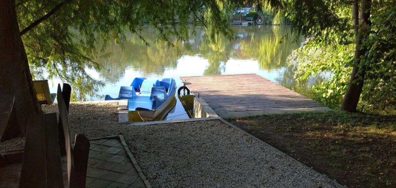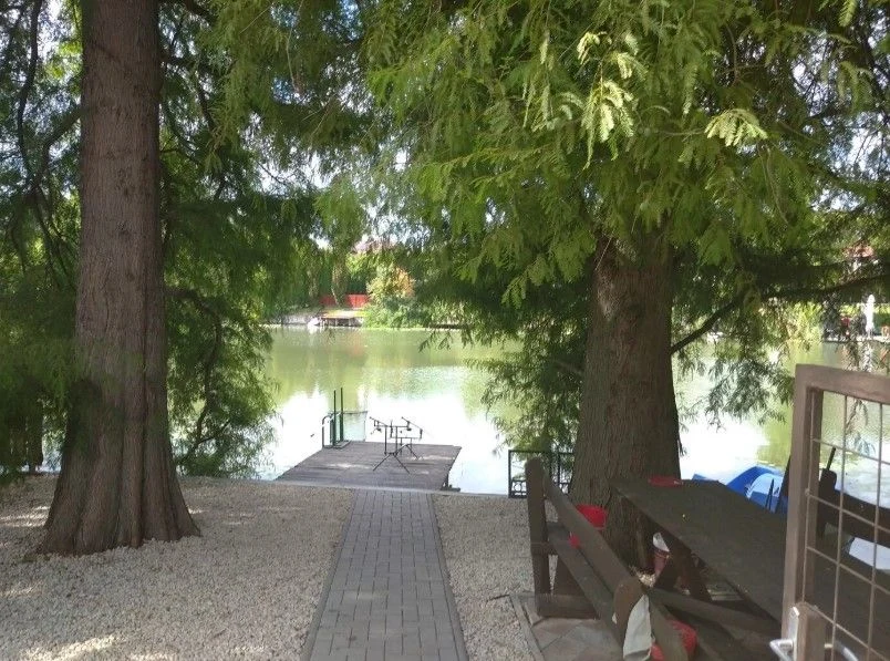 Az épületből az utcafront felé kilépve, egy fedett teraszon élvezhetjük a reggeli madárcsicsergést. A vízpart felőli oldalon lehetőség nyílik szabadtéri bográcsozásra, sütögetésre is. Ehhez bogrács és nyársak, valamint tűzifa ingyenesen biztosított. Az elkészült ételeket elfogyaszthatják kedves Vendégeink a vízparton található kerti kiülőn is. A pihentető kikapcsolódásról rönkfa hintaágy is gondoskodik.A négy oldalról zárt nyaralóval szemben saját, külön bejáratú, vízparti telek található néhány lépésre az épülettől, mely 3 méter széles, csekély forgalmú úton áthaladva közelíthető meg. A vízpart 18 méter széles kiépített parttal rendelkezik, melyhez egy 2,3 x 4 méteres és egy 2,6 x 4 méteres stég is tartozik. A stégről és a partról is kiválóan lehet horgászni. A vendégházhoz ingyenesen SUP-ot és vízibiciklit is biztosítunk. Az udvarban 3 személygépkocsi parkolására van lehetőség.